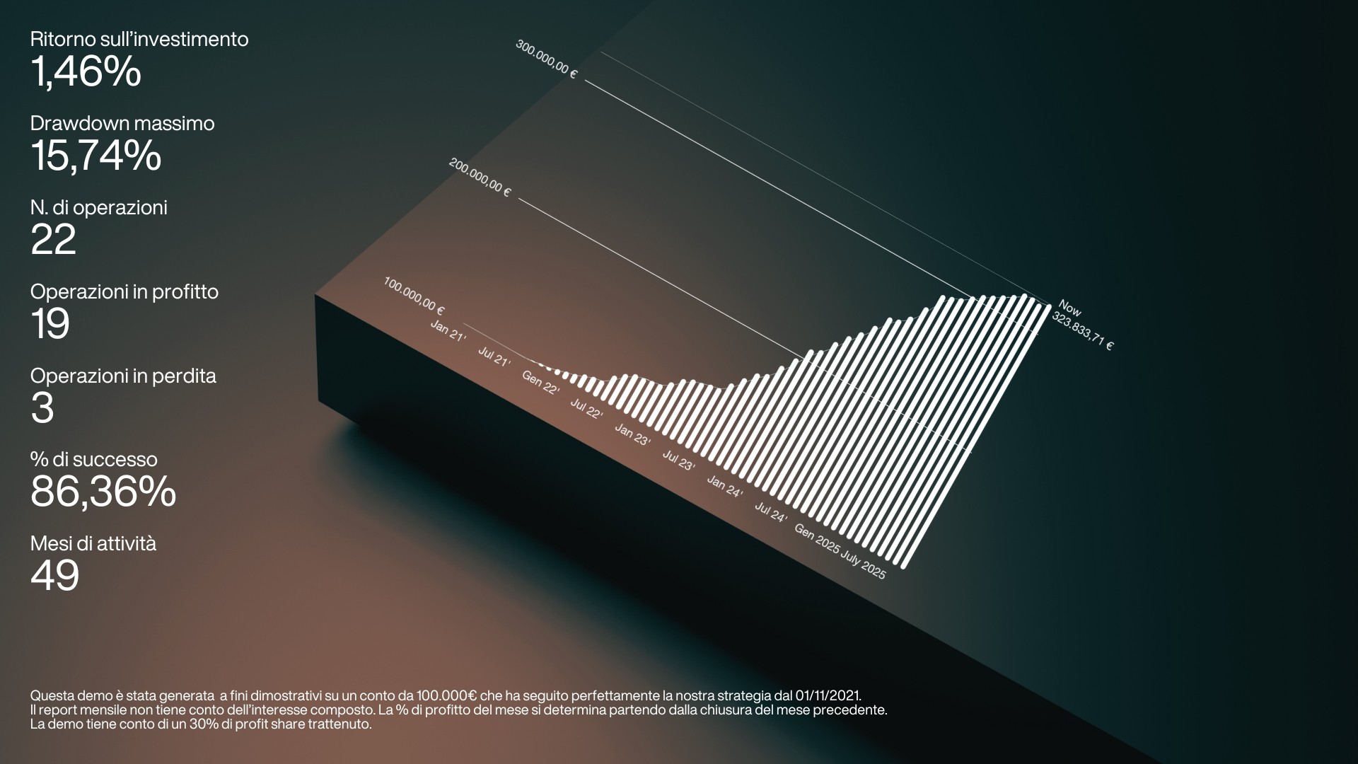 Profitto del mese 1,49% Drawdown massimo 15,74% Mesi di attività 49